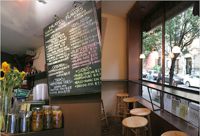 i must admit that i was never a huge falafel fan. i would have it once in awhile but it wasn't something that i craved, well until now. my boyfriend michael and I LOVE to watch the food network and one day we were drawn to the segment on bobby flay’s throw down show with chef einat admon from taim. this bright and cheerful west village falafel shop was even chosen as new york’s best falafel by new york magazine. as einat states on the show “once you have my falafel, you’ll never eat another falafel again.” not only are her falafels naturally crisp, nutty with a nice mix of spices but it also comes in three different flavors: roasted pepper, another infused with harissa for the spicy food lover; and the third tinged with cilantro, parsley, and mint. savor each bite ladies (and gents) and stuff them in a whole-wheat pita with tahini-dappled hummus, tabbouleh, Israeli salad and a healthy dose of their hot sauce. you will be in falafel heaven! taim is located on 222 waverly place, near perry street in west village.