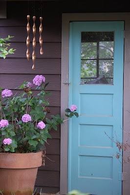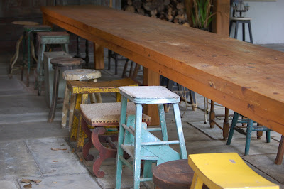 ...I shot these pictures the other day at my friend Lisa's house. I have seriously coveted her outside eating area since the first time I saw it........she has so many different stools that line the table and the table itself is so fantastic! Her potting shed door inspired many a piece of furniture, and the twig chandelier totally stands on it's own!