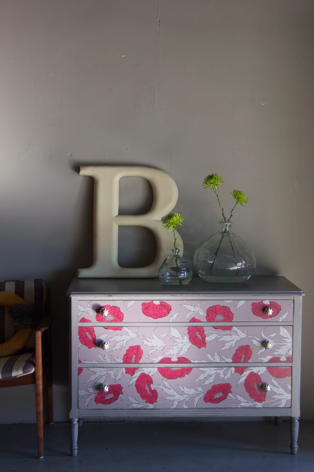 I have been waiting MONTHS to introduce you all to my little superstar....berno....named after the most fantastic Southern Living editor Jennifer Berno who came out and did a story on Knack, and our antics with furniture. I was given complete free reign in creating this piece for the magazine, which is totally AWESOME....all they asked for was a piece that you would be able to see the biggest change in.....and incorporated paint, knobs, and wallpaper. Well, here she is in all her poppy glory! I loved creating this piece, and I hope it shows in her finish......also, Berno is available in the etsy shop if you would like to have her in your home!