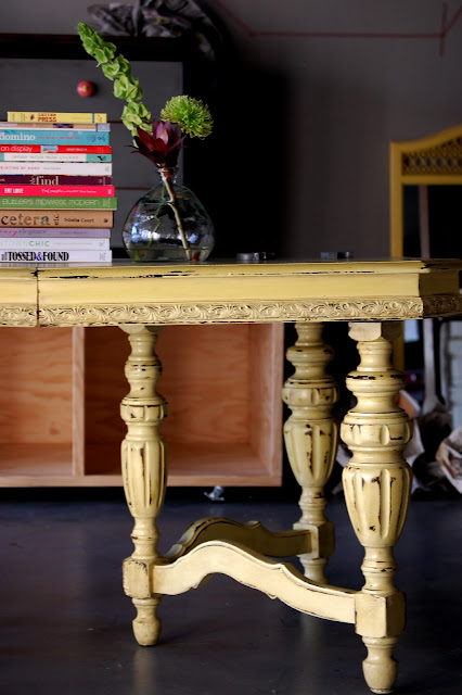 This table belongs to my mom.... she brought it with her from Cali.....but it was in need of a little ....{cough, cough}.....transformation love! So, my mom picked out her color and away we went!