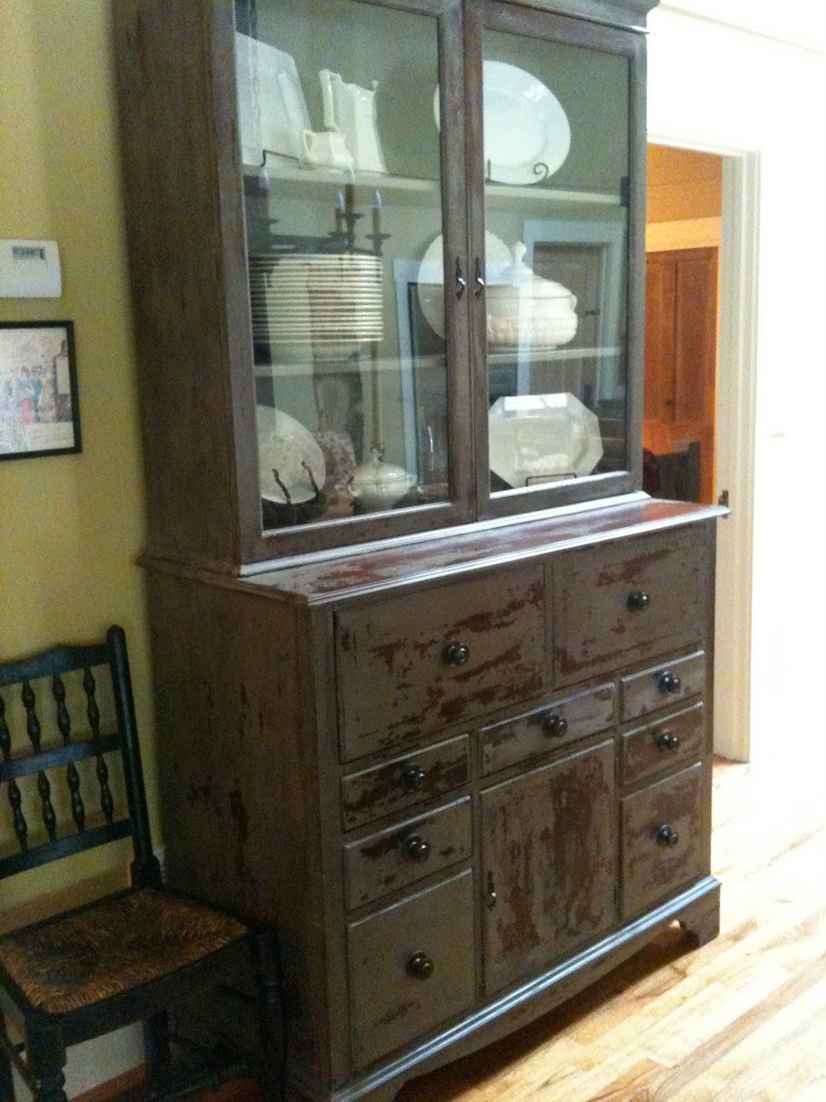 ...although they are not all pictured here.......the big hutch with the white ironstone, and the number chairs are a couple of the pieces ......there are more shots that I hope to get of the bathroom sink fixture, the mirror, the master bed and armoire.....but the lighting was not cooperating.......