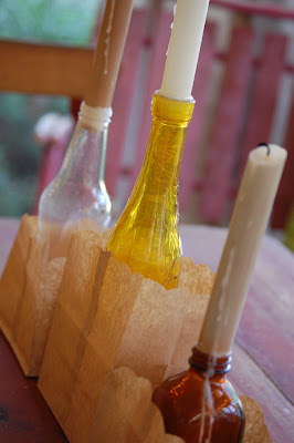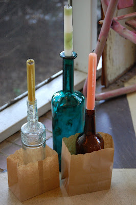 ....in the meantime, I had a little fun with my back porch this weekend! I moved things around ...planted some succulents.....made use of some old bottles laying around.......oh and let's not forget the tissue pom poms! YES....I made them after all of your encouragement........I know some of you will laugh your fannies off at this....but they were hard...and they're not supposed to be!! I made eight in four hours and two of which I had to throw away because they didn't turn out........CRAZY!! I do think I have the hang of it now though, and am excited about making more....hopefully I'll get faster:) xoxo