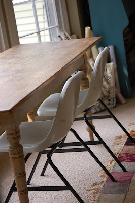My friend Kyle pulled these chairs out of a dumpster.......and I am so mad at myself for not taking a before shot of them {SO not like me!} but just imagine an awful "yellowy" taupe with many markings and totally rusted legs. EEEEK!