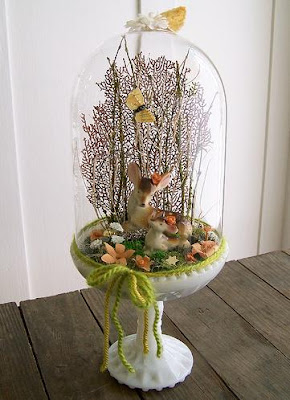 in addition to the amazing work katie did for shopscad, she's done equally amazing work on her own, through her studio, the constant gatherer. katie is primarily a mixed media artist whose collage-style sculptures have become a big hit on sites like etsy and poppytalk handmade. she has a real knack for combining found objects (which are often vintage) and turning them into beautiful sculptures, vignettes, and yarn wreaths.