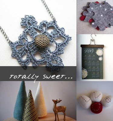 tuesday treasury Uncategorized Dec 9 Written By munted kowhai- rutherford necklace- 32.00red 2 white- balance , set of four coasters-24.00red 2 white-love, felted stones-17.00little love blue- woolen trees- 38.00hello handmade paperie-2009 dandelion calendar- 24.00