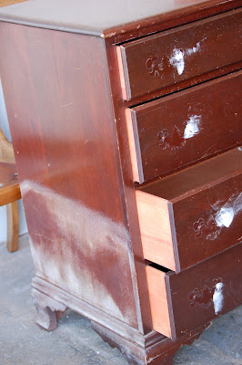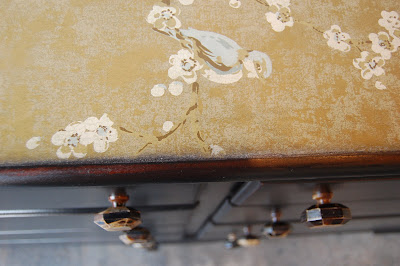 Well friends, here is the first of the furniture production for this month. This piece is part of a nursery that I am working on with my friend Teresa as the designer. Our client "miss L" inherited all of the furniture that I'm painting from her grandmother {two twin beds, this dresser and a nightstand} and it has been sitting in the attic awaiting its moment. "L" wanted to go with a forest theme {strictly NO pastels}...... so I went with this combo which I think is very sweet and foresty!!