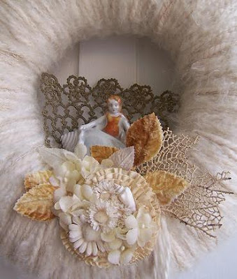 in addition to the amazing work katie did for shopscad, she's done equally amazing work on her own, through her studio, the constant gatherer. katie is primarily a mixed media artist whose collage-style sculptures have become a big hit on sites like etsy and poppytalk handmade. she has a real knack for combining found objects (which are often vintage) and turning them into beautiful sculptures, vignettes, and yarn wreaths.
