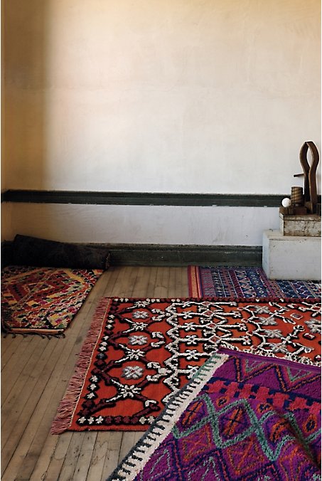 ...I know this is a little bit of a twist, but I am loving these shots from Anthropologie. Gorgeous rugs just bursting with color that add so much to a room. I have three rugs like this in my home and they transcend all trends and are a must have for me....